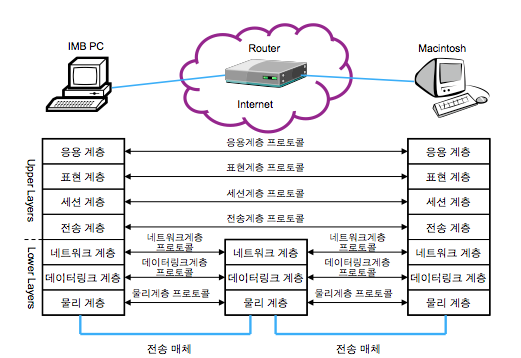 - 국제표준화 기구 ISO에서 1977년에 개방형 시스템 간의 상호 통신을 위해서 재정의한 표준안이다.